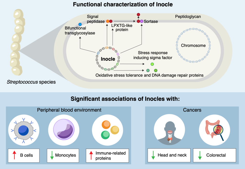 “The average genome size of Inocle is 350 kilobase pairs, a measure of length for genetic sequences, so it is one of the largest extrachromosomal genetic elements in the human microbiome. Plasmids, other forms of extrachromosomal DNA, are at most a few tens of kilobase pairs,” said Kiguchi. “This long length endows Inocles with genes for various functions, including resistance to oxidative stress, DNA damage repair and cell wall-related genes, possibly involved in adapting to extracellular stress response.”