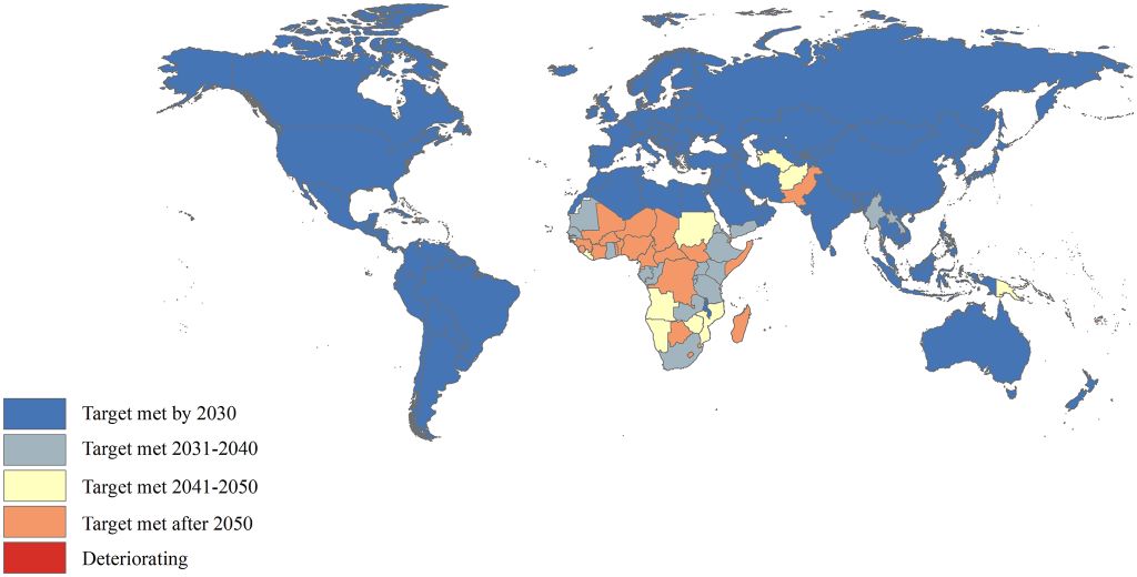 In the new study, researchers used data from the UN to analyse annual under-five death counts and mortality rates from 1990 to 2023 across 200 countries and territories. They calculated the rate of change in mortality over time and used those trends to project when those countries still above the target threshold would be expected to reach it.